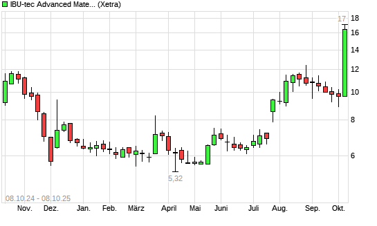 Mit dem Anstieg auf 16,35 EUR hat die IBU-tec advanced materials-Aktie (ISIN DE000A0XYHT5) am 07.10.2025 ein neues 12-Monats-Hoch erreicht und damit den Kurs vom 06.10.2025 eingestellt.