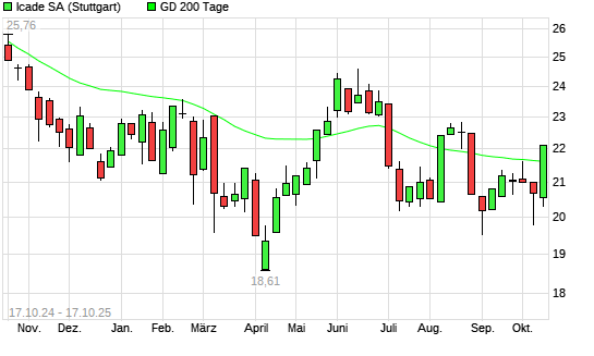 Mit dem Anstieg auf 21,68 EUR hat die ICADE-Aktie am 16.10.2025 die 200-Tage-Linie nach oben gekreuzt.