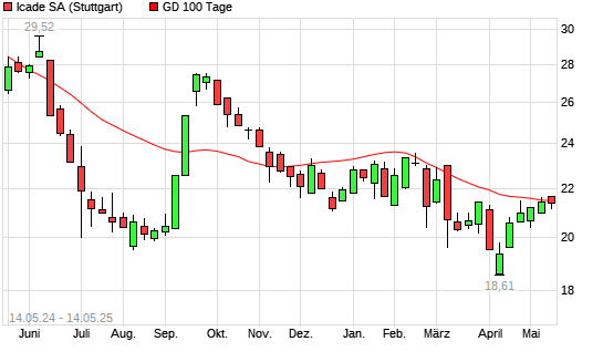 Mit dem Rücksetzer auf 21,22 EUR hat die ICADE-Aktie am 13.05.2025 die 100-Tage-Linie nach unten gekreuzt.
