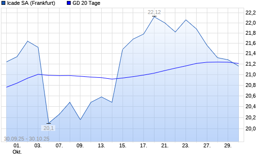 Mit dem Rücksetzer auf 21,12 EUR hat die ICADE-Aktie am 29.10.2025 die 20-Tage-Linie nach unten gekreuzt.