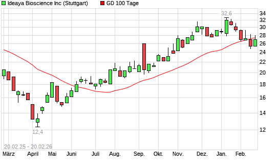 Mit dem Anstieg auf 27,80 EUR hat die IDEAYA Biosciences-Aktie am 19.02.2026 die 100-Tage-Linie nach oben gekreuzt.
