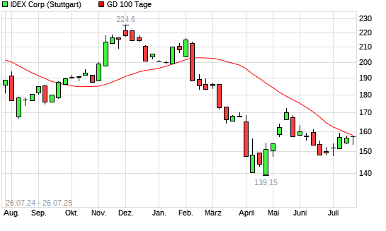 Mit dem Anstieg auf 157,50 EUR hat die IDEX Corporation-Aktie am 25.07.2025 die 100-Tage-Linie nach oben gekreuzt.