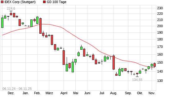 Mit dem Anstieg auf 145,00 EUR hat die IDEX Corporation-Aktie am 05.11.2025 die 100-Tage-Linie nach oben gekreuzt.