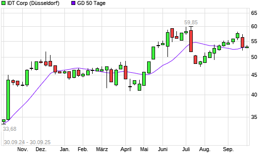 Mit dem Anstieg auf 53,15 EUR hat die IDT-Aktie am 29.09.2025 die 50-Tage-Linie nach oben gekreuzt.