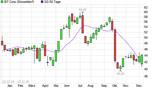 Mit dem Anstieg auf 43,24 EUR hat die IDT-Aktie am 11.12.2025 die 50-Tage-Linie nach oben gekreuzt.