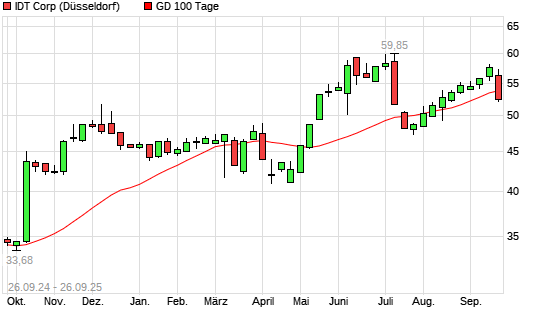 Mit dem Rücksetzer auf 52,25 EUR hat die IDT-Aktie am 25.09.2025 die 100-Tage-Linie nach unten gekreuzt.