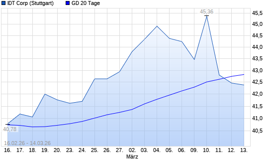 Mit dem Rücksetzer auf 42,30 EUR hat die IDT-Aktie am 13.03.2026 die 20-Tage-Linie nach unten gekreuzt.
