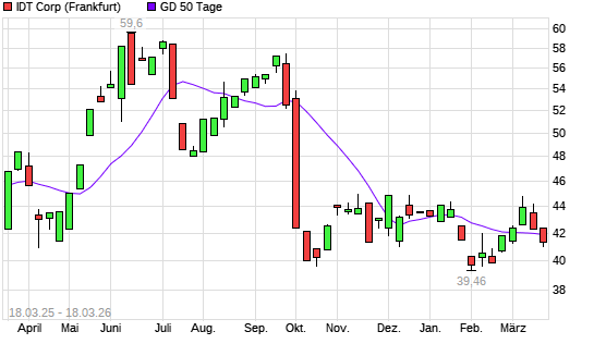 Mit dem Rücksetzer auf 41,08 EUR hat die IDT-Aktie am 17.03.2026 die 50-Tage-Linie nach unten gekreuzt.
