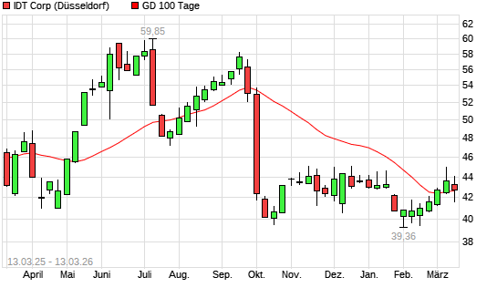 Mit dem Rücksetzer auf 42,48 EUR hat die IDT-Aktie am 12.03.2026 die 100-Tage-Linie nach unten gekreuzt.Die IDT-Aktie befindet sich seit dem 01.10.2025 im langfristigen ...weiterlesen