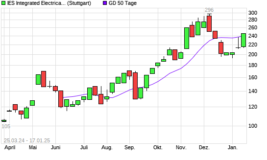 Mit dem Anstieg auf 246,00 EUR hat die IES Holdings-Aktie am 16.01.2025 die 50-Tage-Linie nach oben gekreuzt.