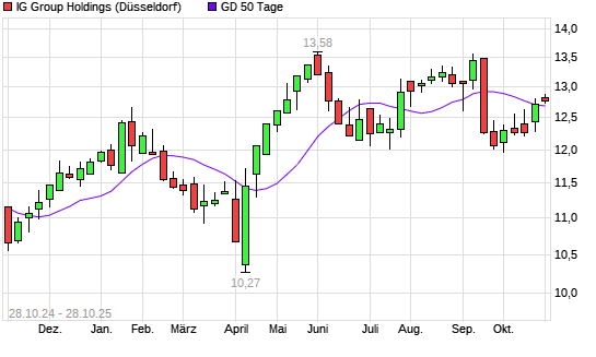 Mit dem Anstieg auf 12,76 EUR hat die IG GROUP HOLDINGS-Aktie am 27.10.2025 die 50-Tage-Linie nach oben gekreuzt.