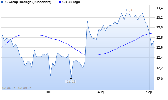 Mit dem Rücksetzer auf 12,89 EUR hat die IG GROUP HOLDINGS-Aktie am 02.09.2025 die 38-Tage-Linie nach unten gekreuzt.