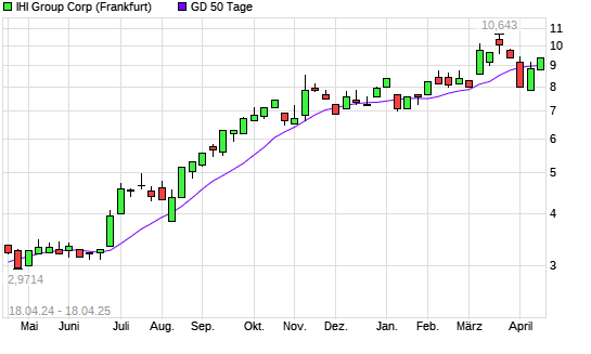 Mit dem Anstieg auf 65,50 EUR hat die IHI Group-Aktie am 17.04.2025 die 50-Tage-Linie nach oben gekreuzt.