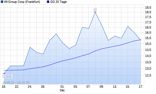 Mit dem Rücksetzer auf 15,30 EUR hat die IHI Group-Aktie am 17.10.2025 die 20-Tage-Linie nach unten gekreuzt.