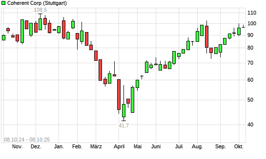 Mit dem Anstieg auf 100,00 EUR hat die II-Viorporated-Aktie (ISIN US19247G1076) am 07.10.2025 ein neues 6-Monats-Hoch erreicht und damit den Kurs vom 02.10.2025 eingestellt.