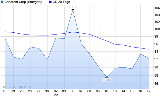 Mit dem Rücksetzer auf 92,40 EUR hat die II-Viorporated-Aktie am 17.01.2025 die 20-Tage-Linie nach unten gekreuzt.