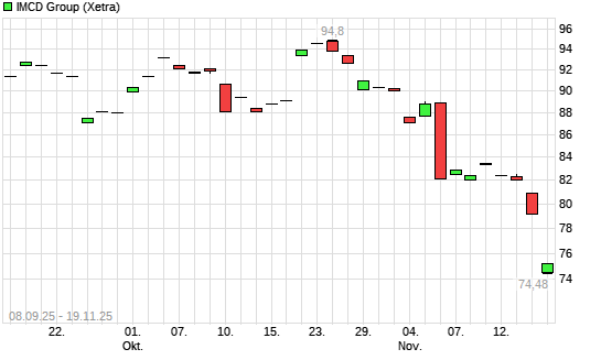 Mit dem Rücksetzer auf 73,34 EUR hat die IMCD-Aktie (ISIN NL0010801007) am 18.11.2025 ein neues 5-Jahres-Tief erreicht und damit den Kurs vom 17.11.2025 eingestellt.