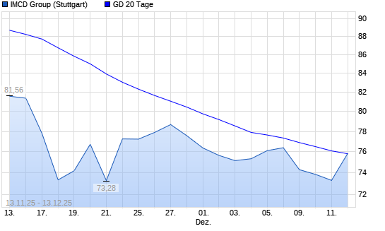 Mit dem Anstieg auf 75,84 EUR hat die IMCD-Aktie am 12.12.2025 die 20-Tage-Linie nach oben gekreuzt.