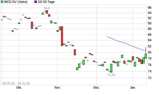 Mit dem Anstieg auf 79,64 EUR hat die IMCD-Aktie am 14.01.2026 die 50-Tage-Linie nach oben gekreuzt.