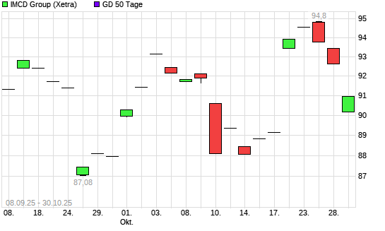 Mit dem Rücksetzer auf 91,02 EUR hat die IMCD-Aktie am 29.10.2025 die 50-Tage-Linie nach unten gekreuzt.