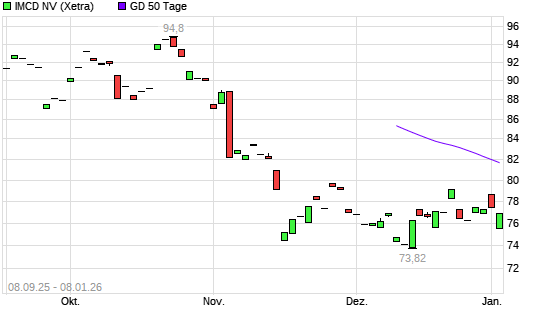 Mit dem Rücksetzer auf 77,18 EUR hat die IMCD-Aktie am 07.01.2026 die 50-Tage-Linie nach unten gekreuzt.