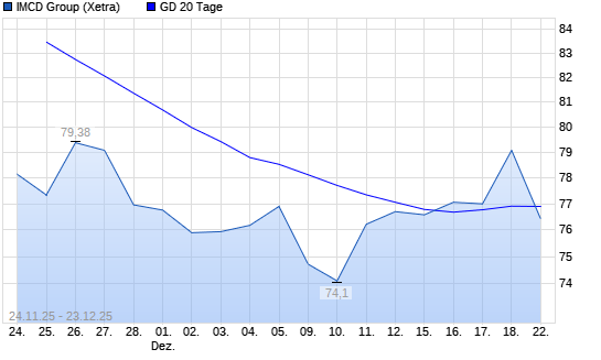 Mit dem Rücksetzer auf 75,70 EUR hat die IMCD-Aktie am 22.12.2025 die 20-Tage-Linie nach unten gekreuzt.Die IMCD-Aktie befindet sich seit dem 04.03.2025 im langfristigen Abwärtstrend und ...weiterlesen