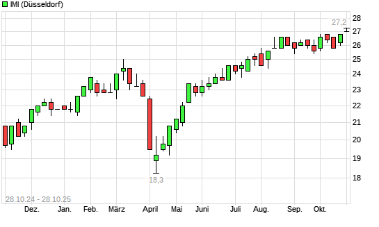 Mit dem Anstieg auf 27,40 EUR hat die IMI-Aktie (ISIN GB00BGLP8L22) am 27.10.2025 ein neues All-Time-High erreicht und damit den Kurs vom 24.10.2025 eingestellt.