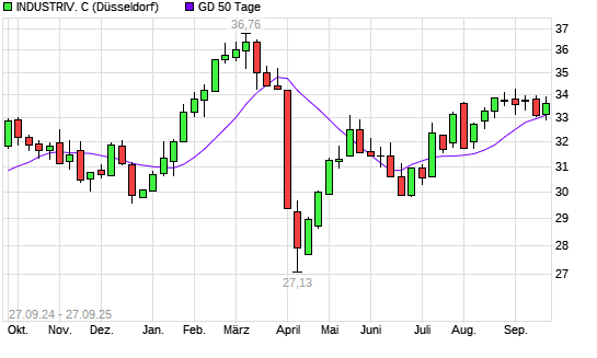 Mit dem Rücksetzer auf 32,97 EUR hat die INDUSTRIV. C-Aktie am 26.09.2025 die 50-Tage-Linie nach unten gekreuzt.