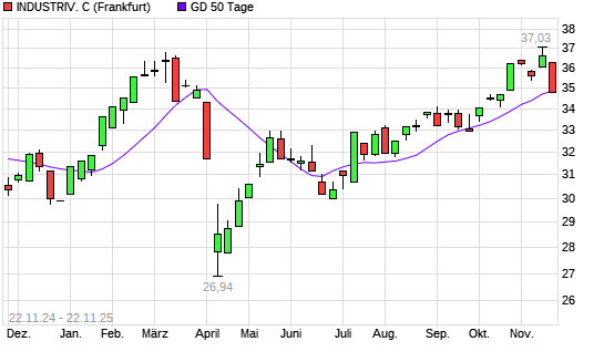 Mit dem Rücksetzer auf 34,80 EUR hat die INDUSTRIV. C-Aktie am 21.11.2025 die 50-Tage-Linie nach unten gekreuzt.Die INDUSTRIV. C-Aktie befindet sich seit dem 08.08.2025 im langfristigen ...weiterlesen