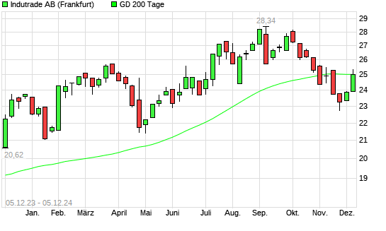 Mit dem Anstieg auf 25,18 EUR hat die INDUTRADE AB-Aktie am 04.12.2024 die 200-Tage-Linie nach oben gekreuzt.