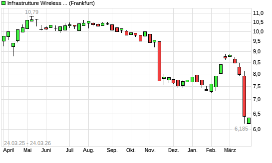 Mit dem Rücksetzer auf 6,36 EUR hat die INFRASTRUT.WIRELESS ITAL.-Aktie (ISIN IT0005090300) am 23.03.2026 ein neues 5-Jahres-Tief erreicht und damit den Kurs vom 20.03.2026 eingestellt.