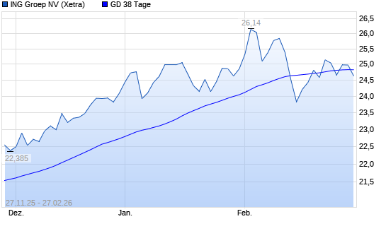 Mit dem Rücksetzer auf 24,76 EUR hat die ING Groep-Aktie am 26.02.2026 die 38-Tage-Linie nach unten gekreuzt.