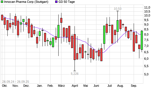 Mit dem Rücksetzer auf 8,05 EUR hat die INNOCAN PHARMA-Aktie am 25.09.2025 die 50-Tage-Linie nach unten gekreuzt.