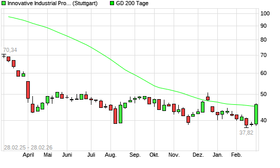 Mit dem Anstieg auf 45,63 EUR hat die INNOVATIVE IND PR-Aktie am 27.02.2026 die 200-Tage-Linie nach oben gekreuzt.
