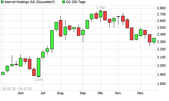 Mit dem Anstieg auf 2.300,00 EUR hat die INTERROLL HOLDINGS S-Aktie am 23.12.2025 die 200-Tage-Linie nach oben gekreuzt.