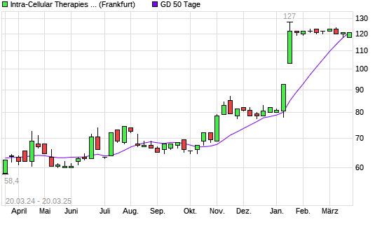 Mit dem Rücksetzer auf 120,00 EUR hat die INTRA-CELLULAR THER-Aktie am 19.03.2025 die 50-Tage-Linie nach unten gekreuzt.