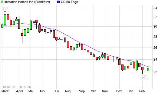 Mit dem Anstieg auf 22,80 EUR hat die INVITATION HOMES-Aktie am 17.02.2026 die 50-Tage-Linie nach oben gekreuzt.