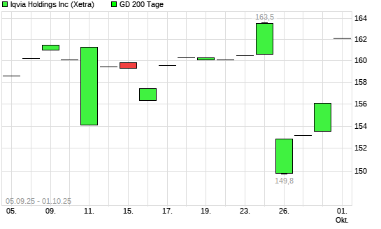Mit dem Anstieg auf 161,20 EUR hat die IQVIA Holding-Aktie am 30.09.2025 die 200-Tage-Linie nach oben gekreuzt.