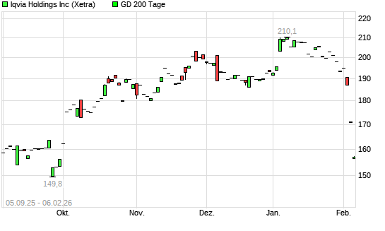 Mit dem Rücksetzer auf 153,05 EUR hat die IQVIA Holding-Aktie am 05.02.2026 die 200-Tage-Linie nach unten gekreuzt.