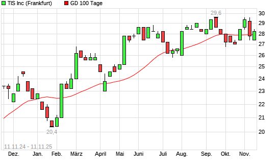 Mit dem Anstieg auf 28,40 EUR hat die IT Holdings-Aktie am 10.11.2025 die 100-Tage-Linie nach oben gekreuzt.
