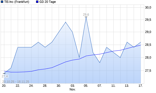 Mit dem Anstieg auf 28,60 EUR hat die IT Holdings-Aktie am 17.11.2025 die 20-Tage-Linie nach oben gekreuzt.