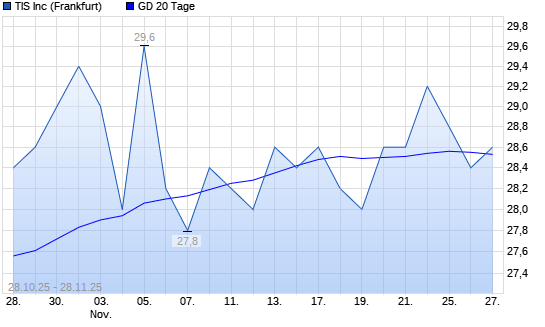Mit dem Anstieg auf 28,60 EUR hat die IT Holdings-Aktie am 27.11.2025 die 20-Tage-Linie nach oben gekreuzt.