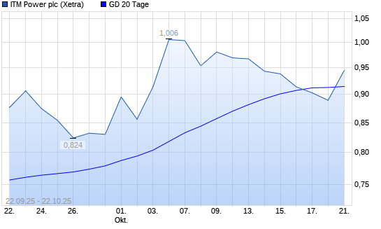 Mit dem Anstieg auf 0,96 EUR hat die ITM Power-Aktie am 21.10.2025 die 20-Tage-Linie nach oben gekreuzt.