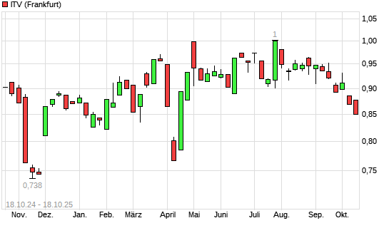 Die  ITV-Aktie befindet sich seit dem 03.10.2025 im langfristigen Abwärtstrend und hat in diesem Zeitraum -6,86% an Wert verloren. Der Abstand zur 200-Tage-Linie beträgt aktuell -6,89%.