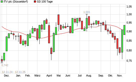 Mit dem Anstieg auf 0,91 EUR hat die ITV-Aktie am 11.11.2025 die 100-Tage-Linie nach oben gekreuzt.