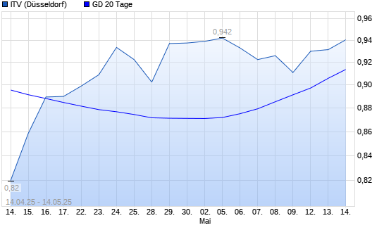 Mit dem Rücksetzer auf 0,92 EUR hat die ITV-Aktie am 13.05.2025 die 20-Tage-Linie nach unten gekreuzt.