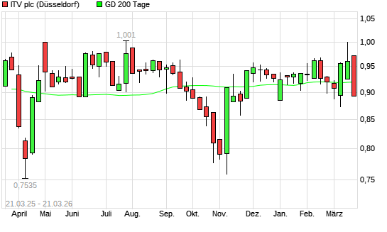 Mit dem Rücksetzer auf 0,91 EUR hat die ITV-Aktie am 20.03.2026 die 200-Tage-Linie nach unten gekreuzt.