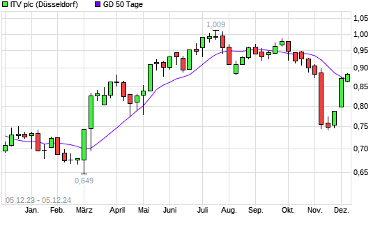 Mit dem Rücksetzer auf 0,86 EUR hat die ITV-Aktie am 04.12.2024 die 50-Tage-Linie nach unten gekreuzt.