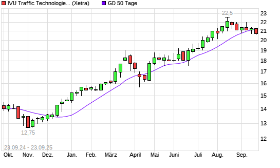 Mit dem Anstieg auf 21,10 EUR hat die IVU Traffic Technologies-Aktie am 22.09.2025 die 50-Tage-Linie nach oben gekreuzt.