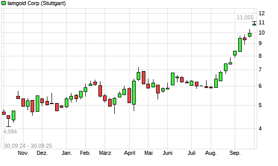 Mit dem Anstieg auf 10,90 EUR hat die Iamgold-Aktie (ISIN CA4509131088) am 29.09.2025 ein neues 10-Jahres-Hoch erreicht und damit den Kurs vom 26.09.2025 eingestellt.